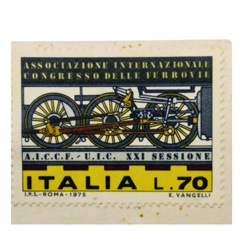 Soggetto francobollo: XXI Sessione Associazione Internazionale Congresso delle Ferrovie (A.I.C.C.F. – U.I.C.). Valore nominale: L. 70.